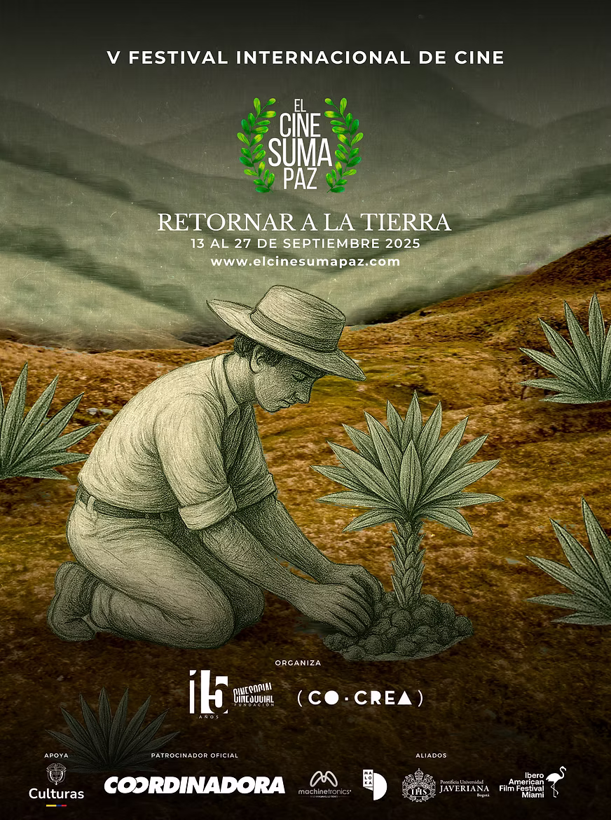 La cuarta edición del Festival Internacional de Cine «El Cine Suma Paz», llevada a cabo del 13 al 27 de septiembre de 2025, combinó eventos presenciales y digitales a través de la plataforma elcinesumapaz.com, con el fin de llegar a audiencias diversas. Bajo el eslogan «Retornar a la tierra», este año el festival se llevó a cabo en Ibagué, Fusagasugá, Sibaté, Neiva, Mosquera, Soacha y Bogotá, ciudades que contaron con más de 10 funciones presenciales, al tiempo que se inauguró una innovadora ventana internacional en Punta del Diablo (Uruguay). El eslogan buscó promover la producción audiovisual nacional e internacional relacionada con temáticas alusivas a la cultura de paz y la protección del medio ambiente, con un enfoque especial en la conexión con el territorio y la restauración de nuestra relación con la naturaleza.